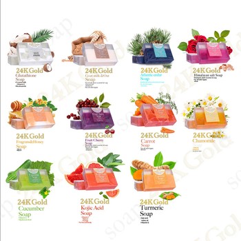 Savon blanchissant naturel avec plante biologique personnalisée, pot de g, fait à la main, pour toilette, en or, acide amino, Transparent, 24k